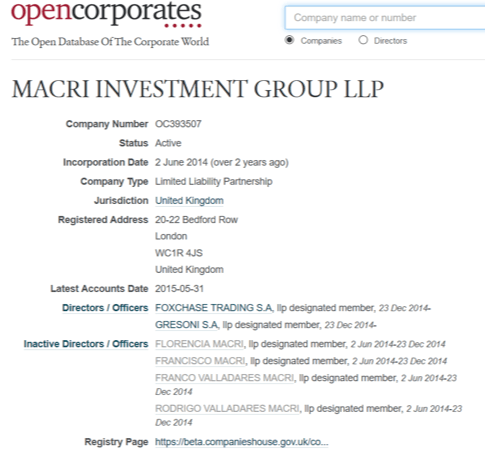 Ya siendo Mauricio jefe de gobierno por la ciudad de Buenos Aires, su padre Franco Macri registró en Panamá el 25 de noviembre de 2008 otra empresa, MACRI GROUP CORP, con el nombre original de WAIRI CORP.