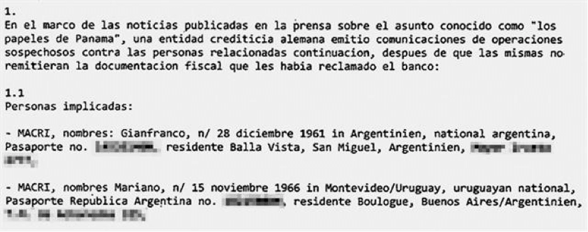 Asegurando que “desde Alemania enviaron esos datos a Buenos Aires sobre los hermanos Macri y otras 67 personas y 11 sociedades, tras estimar que podían tratarse de presuntas maniobras de lavado o de evasión. Llegó vía Interpol, en septiembre, al Ministerio Público Fiscal, que la giró a la Procuración de Criminalidad Económica y Lavado de Activos (Procelac)”.