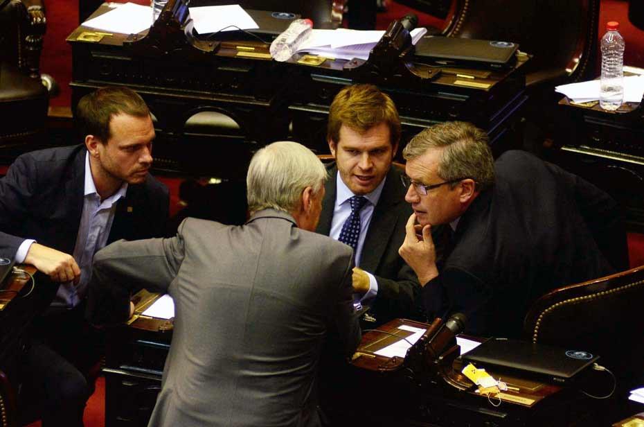 Reemplazó a Federico Pinedo como jefe de bloque y fue el máximo operador del PRO en diputados en temas trascendentales para la gestión Macri como la derogación de la ley de pago soberano, previo al acuerdo con los fondos buitres. Por este último asunto protagonizó un escándalo judicial cuando legisladores del Frente para la Victoria realizaron una denuncia contra él y Diego Bossio por cohecho (coimas) pidiendo que se investigue la conversación que ambos mantuvieron por WhatsApp al negociar el apoyo en el debate parlamentario. La denuncia fue desestimada en una de las últimas actuaciones del juez Norberto Oyarbide, quién declaró la inexistencia de delito.