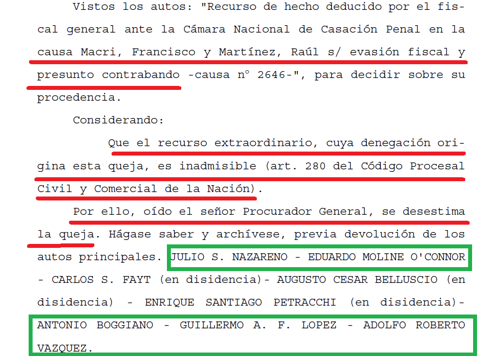 De esta causa, escandalosa como la autocondonación de deuda del Correo Argentino, el actual presidente y sus familiares zafaron gracias a un polémico fallo de Suprema Corte de Justicia de Menem, conocida como “mayoría automática”, donde a los jueces que lo avalaron luego se les abrió juicio político y debieron abandonar sus cargos.