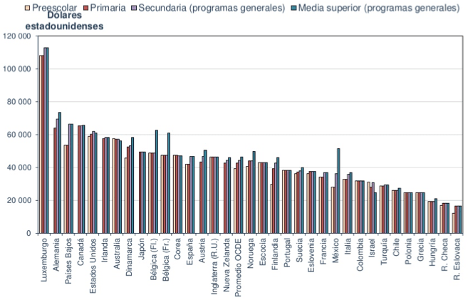 Lo cual expresado actualmente en dólares reportaría un ingreso bruto promedio anual de u$s 18.200 anuales, que ubicaría a Argentina en el último lugar del cuadro de ingresos para la docencia adjunto, publicado por la OCDE (Education at a Glance 2016). Estando por debajo de la mitad de los países avanzados, y del promedio de la OCDE, que superan los u$s 40.000 anuales, y por debajo de países de la región, como México, Colombia, y Chile, que superan los u$s 20.000 anuales.