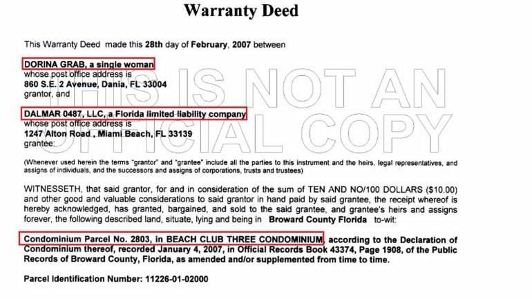 De hecho, en uno de los documentos que accedió el periodista y especialista en software Andrés Ballesteros, se puede observar que la sociedad DALMAR 0487, la única donde Diego Maradona figura como accionista, fue utilizada para adquirir uno de los inmuebles en disputa: la Unidad 2803 en Beach Club Three. Esto, más otros dos, fueron denunciados por Maradona por adquirirlos a su espalda.