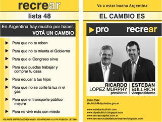 Sin embrago, dos años después, en las elecciones legislativas del 2005, Recrear se alió con su competidor director, el macrismo. Así nació formalmente Propuesta Republicana (PRO) que hoy ocupa los principales cargos del poder ejecutivo.