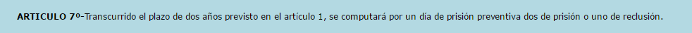 El triunvirato de la Corte aplicó irrestrictamente el 2×1 para los delitos de lesa humanidad, no obstante que el texto positivo de esa ley es muy claro en algunos de sus artículos. Uno de ellos dice expresamente: “transcurrido el plazo de dos años previsto en el artículo 1, se computará por un día de prisión preventiva dos de prisión o uno de reclusión” (art 7).