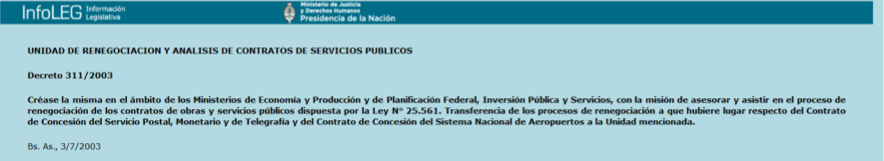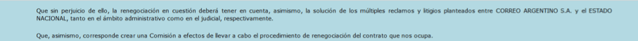 Seguido luego por el presidente Fernando De la Rua, que dictó un sigiloso Decreto de Necesidad y Urgencia (DNU) al respecto, en el que ni nombraba a Correo Argentino, por el que después fue procesado penalmente, junto con otros funcionarios. Y paralelamente Correo Argentino profundizo esa actitud, al directamente pretender, mediante el incumplimiento del pago del canon comprometido, una renegociación integral del contrato, en contra de los intereses del Estado, aduciendo la existencia de asimetrías con otros correos privados.