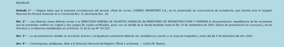 “En suma, la concursada (Correo Argentino) gozó de un plazo por demás extenso para obtener la conformidad de su acreedor mayoritario (el Estado) inusual en cualquier trámite concursal y contralegem (contra la ley). El proceso del concurso del proceso preventivo se encuentra minado de un sinnúmero de irregularidades; muchas de ellas se realizaron violentando el orden público concursal; retrotrayendo el proceso a etapas iniciales precluídas (ya realizadas o cuya oportunidad se había vencido).