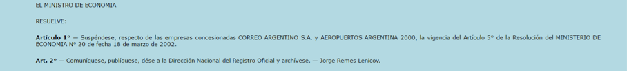 Pocos meses después Remes Lenicov fue sustituído por Roberto Lavagna, quién se olvidó de la opinión del Procurador, y abrió nuevamente la puerta a la renegociación. La que no se concretó, por las desmedidas pretensiones de Correo Argentino. Por lo que este más bien que una compensación, pretendía una notable descompensación a su favor, postura que resulta típica en los integrantes de la “patria contratista” argentina.