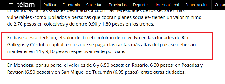 Según señala un cable de la Agencia de Noticias Télam perteneciente al Estado Nacional, está política de subsidios estaba destinada a que no aumentara el precio del boleto, en particular en las ciudades que padecen los boletos más caros, como es el caso de Córdoba: