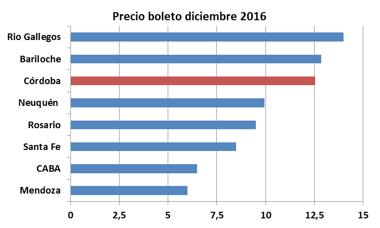 “En base a esta decisión, el valor del boleto mínimo de colectivo en las ciudades de Río Gallegos y Córdoba capital -en los que se pagan las tarifas más altas del país, se deberían mantener en 14 y 9,10 pesos respectivamente por viaje”.
