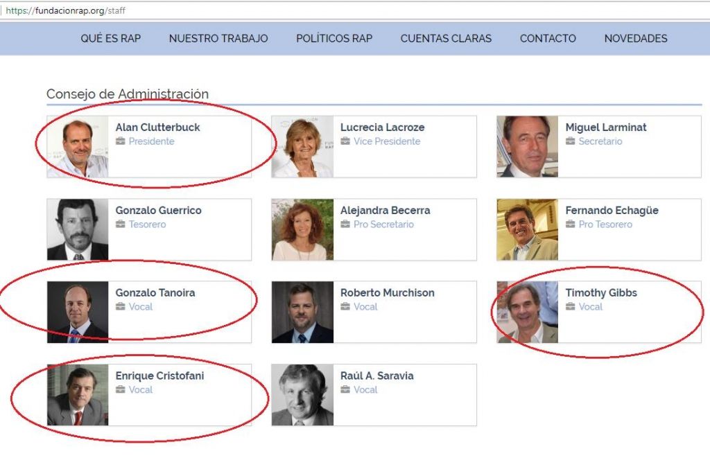En la siguiente imagen .gif, se puede ver en detalle a todos sus integrantes, ninguno de los cuales se puede decir que no pertenecen al establishment local o internacional. En el cual tambien aparecen las embajadas que auspician y financian a RAP.