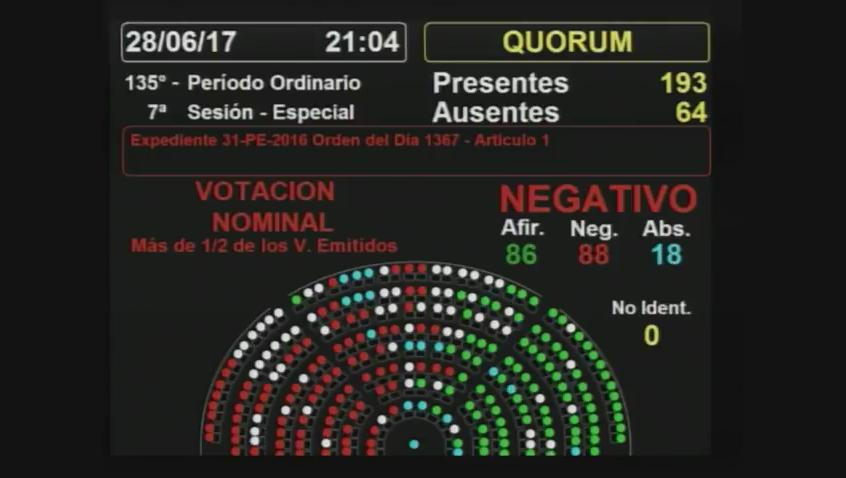 En el momento de la votación, varios diputados quedaron confundidos de qué se iba a votar, si el artículo original, o las propuestas de reforma. A pesar de ello, el presidente de la Cámara, Emilio Monzó, procedió rápidamente a la votación del primer artículo, cuando a varios no les quedó claro si se votaba el original o la reforma propuesta. Por la confusión, se duplicó la cantidad de abstenciones, pasando de los 7 a 18, y los votos negativos superaron a los positivos, 86 contra 88.