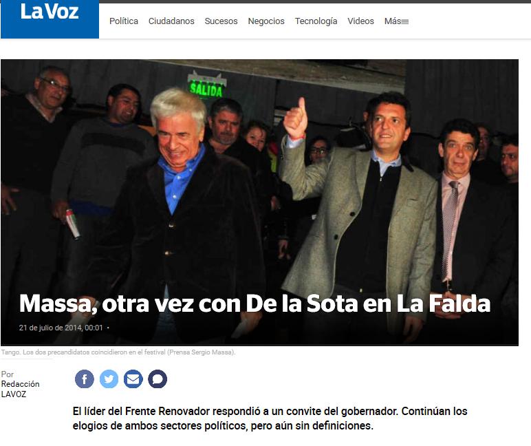 A comienzos de junio pasado, el blog de periodismo de investigación Eldatoclave, con la firma de la periodista Marina Ulloa, publicó una nota asegurando que Odebrecht aportó dinero para las campañas de Massa, Stolbizer y del ex gobernador de Córdoba, José Manuel de la Sota. Quien fue candidato a presidente de la Nación por el frente UNA, junto con el tigrense Massa. La nota estaba basada como fuente reservada, en uno de los fiscales que investiga las distintas causas de Odebrecht en Argentina, y fue republicada por distintos portales K.