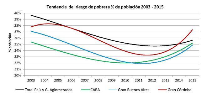 Conforme los datos del INDEC, la población en riesgo de pobreza en el 2003 en CABA, calculada con los métodos de la OCDE (Organización para la Cooperación y el Desarrollo Económicos) superaba el 35%. A partir de allí, durante 7 años comenzó a descender levemente hasta tocar un piso de 32% en el año 2010.