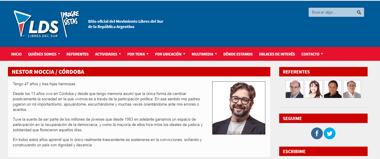 “Tuve la suerte de ser parte de los millones de jóvenes que desde 1983 en adelante ganamos un espacio de participación en la recuperación de la democracia, y como la mayoría de ellos hice míos los ideales de justicia y solidaridad que florecieron aquellos días. En todos estos años aprendí que lo único realmente trascendente es sostenerse en la convicciones, soñando y construyendo un país con dignidad y decencia” dice Moccia, desde la plataforma de Libres del Sur, contradiciéndose a sí mismo.