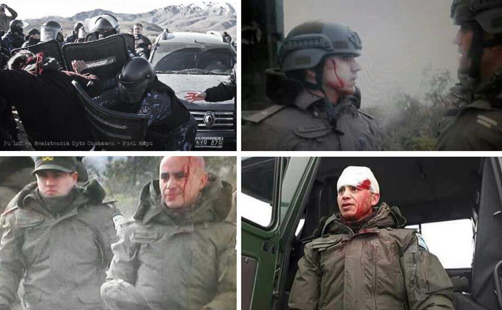 Primero los enfrentamos. Les tirábamos piedras y le gritábamos que se fueran. Que ellos no tenían nada que hacer acá, porque nosotros estábamos ejerciendo nuestro derecho a la protesta y estábamos denunciando lo que el Estado estaba haciendo con nosotros. Uno trata de convencer igual, pero sabemos que ellos tienen la cabeza lavada lamentablemente. Siguieron tirando. Formaron una línea a lo ancho de la ruta. Los del medio con escopetas y a los costados, dos o tres gendarmes tirando con nueve milímetros. Nos replegamos al territorio. Pensamos que sólo venían a desalojar la ruta y que entonces iba a cesar el fuego. Pero siguieron tiroteando para adentro. Se vinieron para el alambrado. No los dejábamos entrar hasta que nos atraviesan un Unimog acá al costado, se apuestan cinco tiradores atrás y empiezan a tirar.
