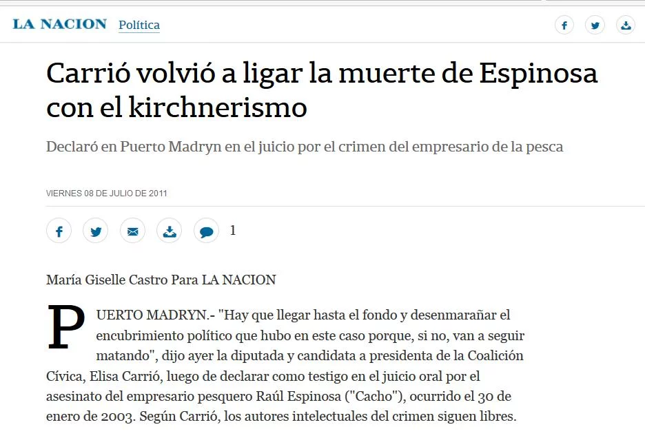 La gran duda que surge es por qué Elisa Carrió no profundizó la investigación en el momento en que recibió la información en aquel mes de enero del 2003. En lugar de tomarse una avión rumbo a Buenos Aires, dejando al intemperie a su contacto con una gravísima denuncia, que terminó acabando con su vida.