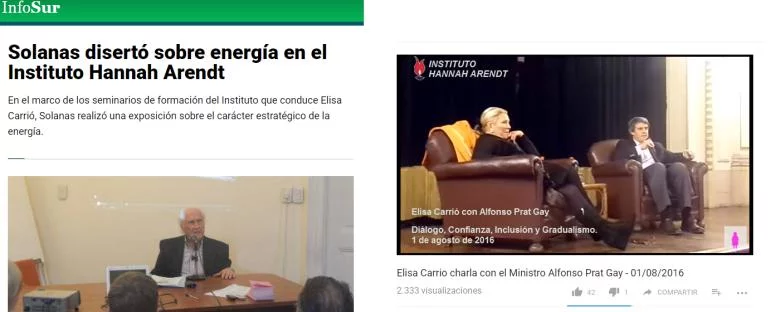 De hecho, el “Anna Harendt” venía teniendo el empacho de invitar solo a referentes de la política que estuvieran apegados electoralmente a la figura de Lilita. Llegando a un punto que, por ejemplo, ofrecieron una charla sobre políticas energéticas con la participación de Fernando “Pino” Solanas, cuando integraba con Lilita el Frente Amplio UNEN. Y un par de años después sobre “Diálogo, confianza, inclusión y gradualismo”, con quien era en ese entonces el ministro de hacienda Alfonso Prat Gay cuando ya no existía el centro-izquierda UNEN y sí el centro-derecha Cambiemos.