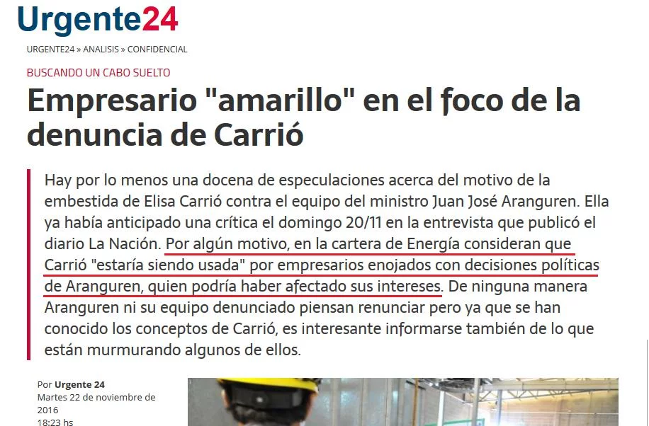 Sin embargo, una hipótesis filtrada por el portal Urgente24, da cuenta de los intereses detrás de Elisa Carrió, referidos a la cartera que maneja el negocio del gas.