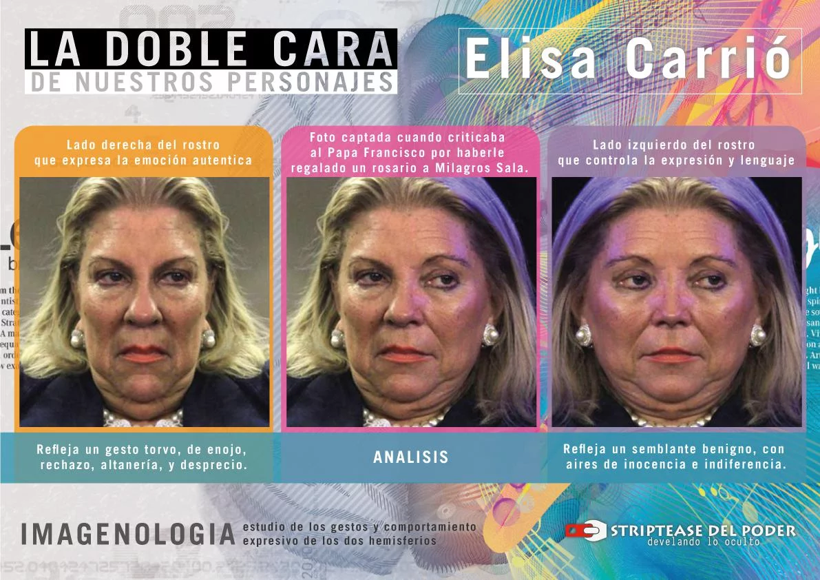 Fue funcionaria judicial de la Dictadura, y a la vez redactora de importantes normas por los Derechos Humanos. Investigó la corrupción financiera de 2001, que no obstante le sirvió de excusa a los bancos extranjeros para explicar el vaciamiento de las reservas del país, generando la catástrofe de diciembre de ese año. Y a la par eliminó a la posible competencia al Grupo Clarín. Pudo haber evitado el ascenso del kirchnerismo, por un supuesto involucramiento en un narco-asesinato. Creó y destruyó sus propios espacios electorales. Pasó de ejercer espacios progresistas, a diseñar y defender el frente Cambiemos. Dotó de un aurea de honestidad al actual presidente de la Nación, cuyo enriquecimiento personal y el de su familia, nada tiene que envidiarle al de Lázaro Baéz. Y hoy genera actos lícitos e ilícitos que ella denunciaba en otros tiempos. Con sus estruendosas denuncias en nombre de la moral, acorrala a altos magistrados y funcionarios con fines non sanctos. Tiene un escueto patrimonio declarado, pero realiza viajes de placer y alojamiento vip por distintos países. No es una desequilibrada religiosa y menos aún una luchadora moral, solo una gran operadora que tiene una especial cualidad para la acción dúplice y sesgada, disimulando su verdadero rol.