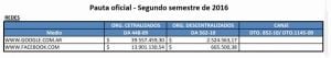 A partir de esta presentación, la Presidencia decidió publicar semestralmente la distribución de la pauta en los distintos medios de difusión, entre ellos las plataformas virtuales. Así, en el segundo semestre de 2016, Facebook y Google recibieron un total de $56.638.653,39. Es decir, la pauta para las redes sociales se incrementó en un 61,5% en comparación con el semestre anterior.