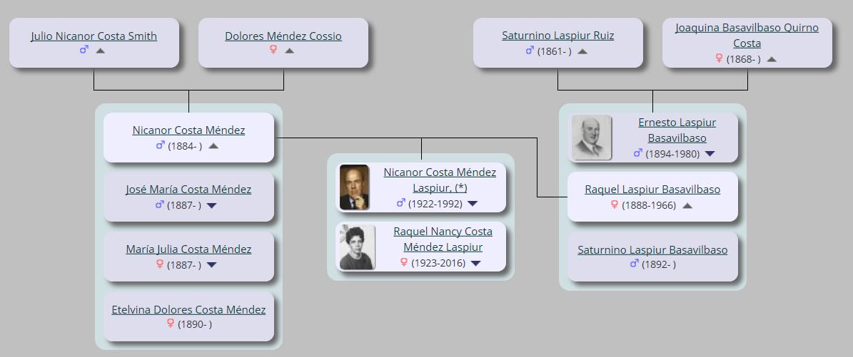 Quien también recibió una educación parecida en Londres, fue su íntimo amigo de la infancia, Nicanor Costa Méndez Laspiur. Como consecuencia de que su abuela materna Mariana Smith Brown, era descendiente directa de ingleses. Quien está emparentado también íntimamente con el patriciado oligárquico porteño, con los Basavilvaso, Cossio, Quirno Costa, etc, como se aprecia en el siguiente cuadro genealógico.