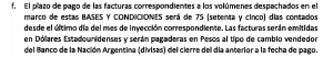 O sea que la factura de abril emitida en dólares, debía pagarse con el tipo de cambio vigente el 14 de julio, y así sucesivamente, hasta el 14 de diciembre, correspondiente a la factura de septiembre. Coincidiendo de esta manera los periodos de pago previstos, con el periodo en el que ocurrieron las mayores devaluaciones del peso.
