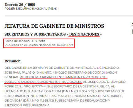 Entelman era un prestigioso abogado de la ciudad. Había sido hasta 1989 el principal asesor jurídico y operador del presidente Raúl Alfonsín, “el padre de la democracia”. Y el mentor intelectual de las leyes de impunidad “Obediencia debida” y “Punto final”. Luego, a fines de los 90, también asesoró al menemismo para la privatización del PAMI, de la cual resultó electo una empresa que él representaba: Siglo XXI. Tras ello, en 1999, cuando asumió el gobierno de la Alianza con Fernando De la Rúa, mediante el decreto 36/1999 fue nombrado Subsecretario de Relaciones Institucionales de la Jefatura de Gabinete a cargo de Rodolfo Terragno.