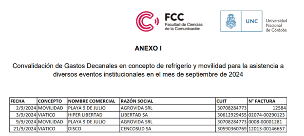 Sin embargo, estas erogaciones claramente para uso personal y privado de la decana, como puede verse en el documento publicado en el Digesto de la UNC reproducido arriba, nada tuvieron que ver con quehacer universitario, dado que fueron realizadas: