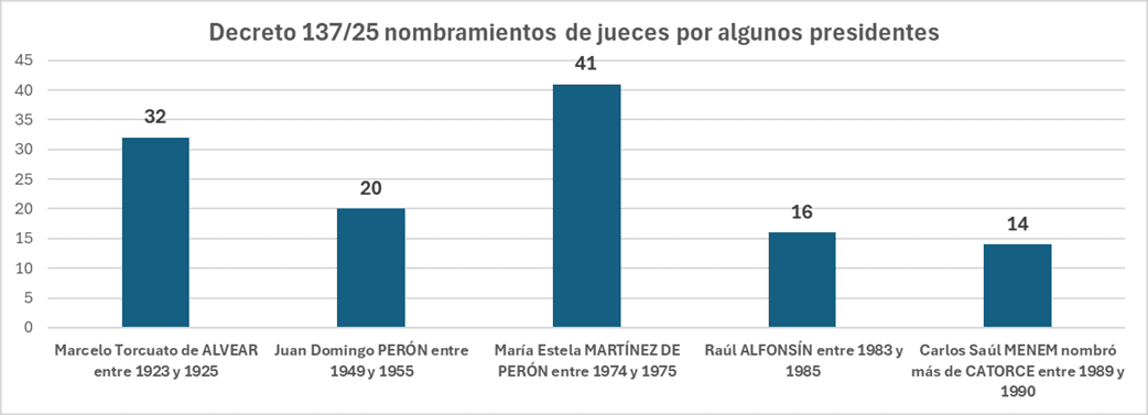 Estableciendo así un derecho consuetudinario, que solo fue tratado de vulnerar por el presidente Mauricio Macri, con la designación en comisión de los jueces Horacio Rosatti y Carlos Rosenkrantz con el decreto 83/15. Aconsejado para ello por Fabián “Pepín” Rodríguez Simón, quien luego se mantuvo durante años como prófugo de la justicia. Cuyo estrepitoso fracaso reafirmó aún más ese derecho consuetudinario. Y que ahora como una vuelta a la Generación del 80 y la Oligarquía que tanto admira, como si fuera «YO el SUPREMO», pretende vulnerar el presidente Milei.
