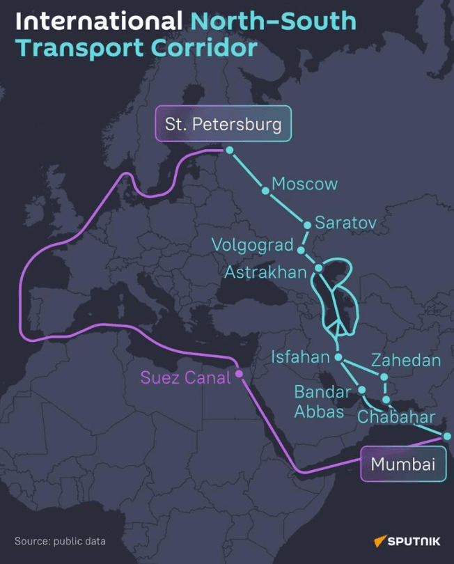 El que a su vez enlaza con el corredor ruso iraní indo, que va de San Petersburgo a Munbai, pasando por Teherán, integrando así los BRICS. Pudiendo de esa manera evitar los estrechos de Ormuz y Suez. Razón por la cual, la caída de su régimen actual, y su reoccidentalización como en los tiempos del Sha, tal como pretenden Israel y EEUU, aparejará seguramente no solo la salida de Irán de los BRICS, sino también la pérdida de ese pivot o centro de tránsito estratégico. Evento que evidentemente ha incidido en el conflicto para contenerlo, con las advertencias provenientes de Rusia y China de estar cerca de una 3ra Guerra Mundial.