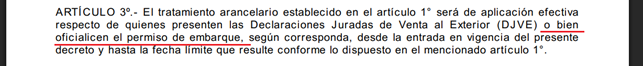 Esto quiere decir que la eximición de las retenciones, también beneficiará a quienes logren obtener ínterin el permiso de embarque. Con el agregado también ambiguo, que ello se puede cumplimentar “hasta la fecha límite que resulte conforme lo dispuesto en el mencionado artículo 1°”.