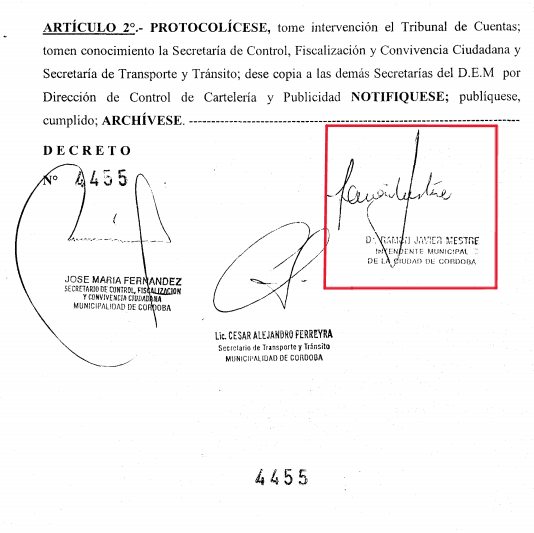 Es decir, luego de permitir que Estudios Publicitarios Braver SA siguiera explotando el servicio sin contrato durante años, mediante dicho decreto, Mestre le perdonó a la empresa concesionaria todo lo que adeudaba. Y, además, le volvió a adjudicar de manera directa, sin licitación alguna, y sin que la empresa tenga que poner un peso de garantía, la publicidad en la vía pública a cambio de una nueva y millonaria promesa de inversión que la empresa no cumplió. Con un simple decreto y sin aval del Concejo.