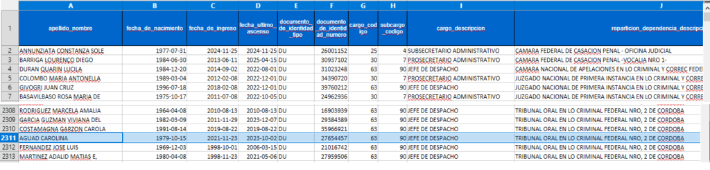 Todo comenzó con un doble artículo que publicó la sección Córdoba del diario Perfil, el primer fin de semana de diciembre. La periodista de casos judiciales, María Ester Romero, expuso un relevamiento sobre los nombres que figuran en la nómina del personal de los tribunales judiciales federales de la provincia de Córdoba.