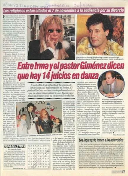 Con 17 años, aún en la adolescencia, en 1986 Gebel conoció en la iglesia a Héctor Aníbal Giménez, más conocido como elPastor Giménez”, el primer evangelista millonario, mediático y popular de la Argentina durante las décadas del 80 y 90. Su figura, sin embargo, terminaría envuelta en una serie de escándalos judiciales y denuncias públicas: desde presuntas estafas inmobiliarias vinculadas a un plan de viviendas inexistente, denominado “Viviendas Jeremías”, hasta acusaciones de su exesposa, la pastora Irma López, y de una de sus hijas por daños, amenazas y lesiones.