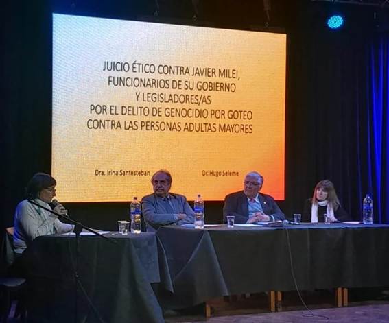 Para los miembros del Tribunal Ético, Miguel Rodríguez Villafañe, Patricia Cóppola y Rubén Stiberman “el concepto de genocidio por goteo”, por el que fueron sometidos a juicio ético el presidente Javier Milei y los ministros y funcionarios de su gobierno, “pone de manifiesto que las políticas públicas son una forma de violencia institucional sostenida y mortal”, que no busca la eliminación física directa de la población, pero “provoca muertes evitables y sufrimiento extras, a través del desmantelamiento del sistema de protección social”.