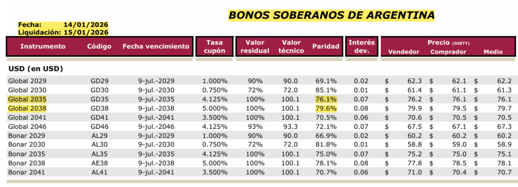Pero ahí no acaba la cuestión, porque contablemente esos títulos están valuados a su valor de mercado, no a su valor nominal que el Tesoro deberá abonar por ellos. Y según el banco Supervielle y otros corredores bursátiles, esos títulos el 14 de enero estaban valuados a precios del mercado con una Paridad del 76,1% en el caso del Bonar o Global 2035, y 79,6% en el caso del Bonar 2038. Tomando un promedio de ambos valores (77,85 %) el calculo arroja que el valor nominal de ellos rondaría los USD 7.200 millones, como se puede apreciar en las celdas resaltadas con rojo en el cuadro anterior.