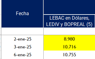 Seguidamente en nuestra nota bajo el subtítulo El monto de BOPREAL entregados es el triple de lo obtenido, decíamos: Revisando el dato consignado por Clarín, en el Anexo del Informe Monetario Diario, se verifica que sí, que los BOPREAL pasaron de USD 8.980 millones a USD 10.716 millones, entre el 2 y el 3 de enero, fecha en que se concretó la operación. Arrojando una diferencia de USD 1.736 millones de BOPREAL supuestamente dados en garantía.