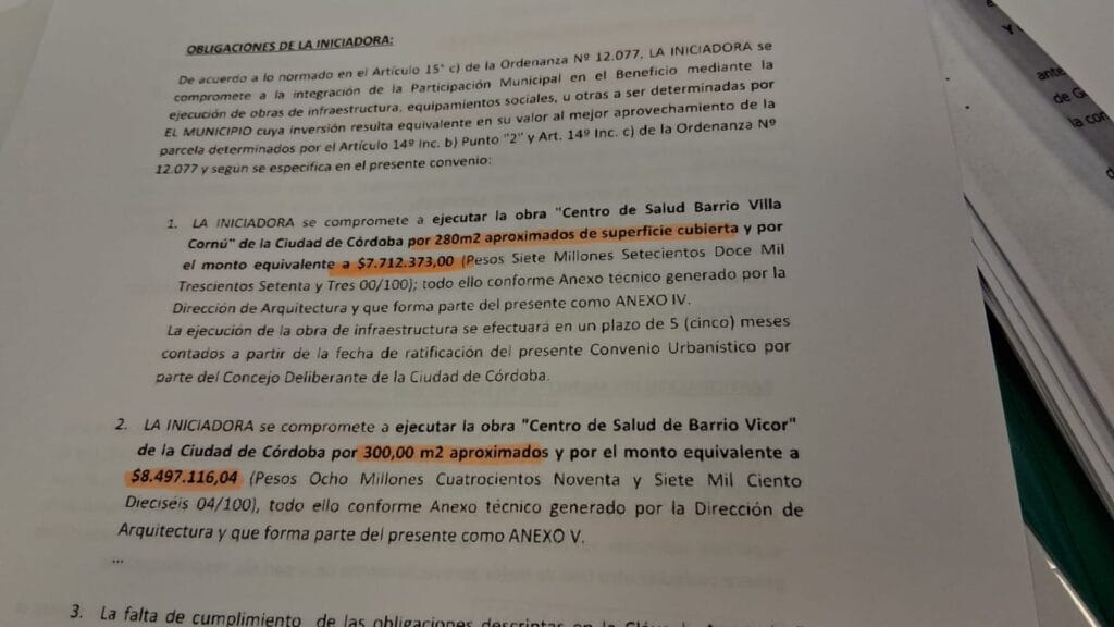 A cambio de este enorme beneficio que le dio el intendente Mestre a IRSA y a PROACO de millones de dólares, en el convenio, las empresas desarrollistas se comprometieron a edificar… ¡dos dispensarios en barrios populares! Casi una burla.