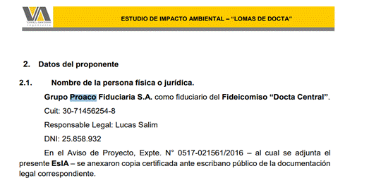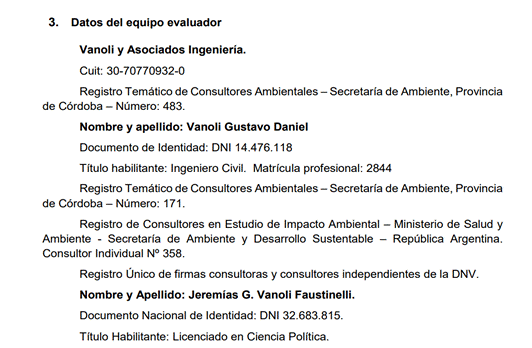 A su vez Jeremías Vanoli Faustinelli ocupó el cargo de Secretario de Planificación y Desarrollo Económico en la municipalidad de La Calera en diciembre de 2023 y hoy se desempeña como secretario de gobierno de la gestión de Fernando Rambaldi. Además Jeremías Vanoli figura como firmante junto a su padre en el estudio de impacto ambiental de “Lomas de Docta”, el cuestionado proyecto de Lucas Salim (PROACO), donde 193 hectáreas se transforman en 3.450 lotes en Malagueño, para el cual no se difundió la audiencia pública y vecinos de la zona pidieron que se rechazara el informe de impacto ambiental.