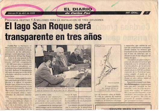 Si hay una figura a la que siempre se le endilga la responsabilidad de la situación del lago San Roque es el “anfibio” Fabián López. Ya en abril de 2003, cuando estuvo al frente de la DiPAS, Fabián López aseveró que el lago iba a quedar transparente, tal como le acredita la publicación obtenida del archivo de la ONG vecinal ADARSA, perteneciente a El Diario de Carlos Paz.