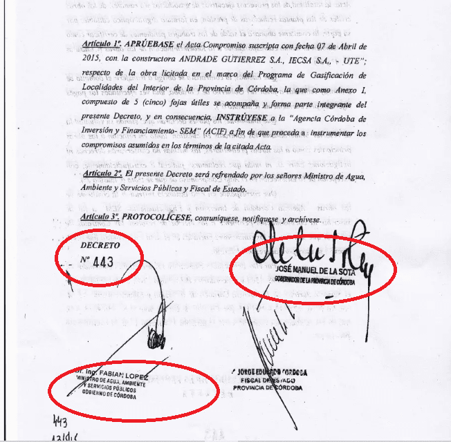 Fabián López, sí se encargó de ponerle un punto final al caso, mediante el polémico Decreto N° 443/2015, lanzado en el tramo final del último mandato de José Manuel de la Sota, donde se estableció pagar a las empresas que habían ganado la licitación, liderada por Andrade Gutiérrez, para recibir millonarios desembolsos por “tareas preliminares” que en realidad nunca realizaron. Con lo cual, funcionó como una suerte de borrón y cuenta nueva para proceder con una nueva licitación.