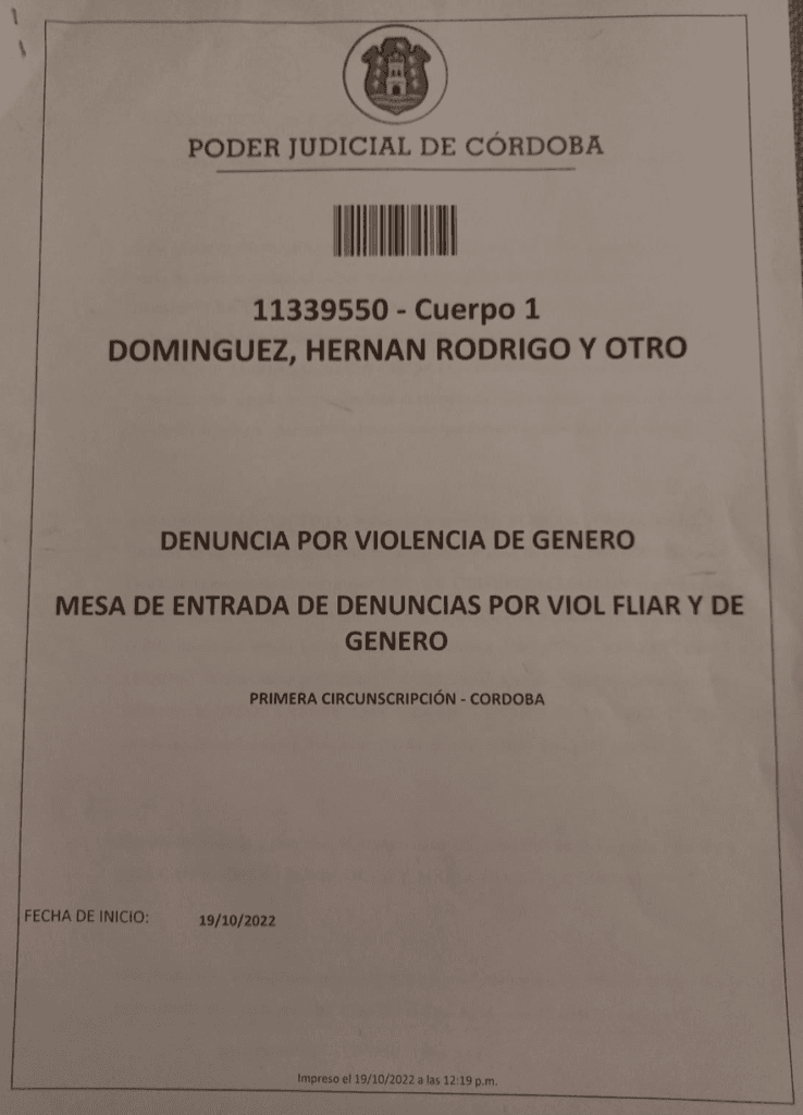 Esta demanda CD contra el ex zar de la TV cordobesa, fue acompañada por otras denuncias en las cuales ahondaremos: una por presunta estafa y otra por violencia de género. La de género fue presentada el 19 de octubre del 2022. Lleva el número de expediente 11339550.