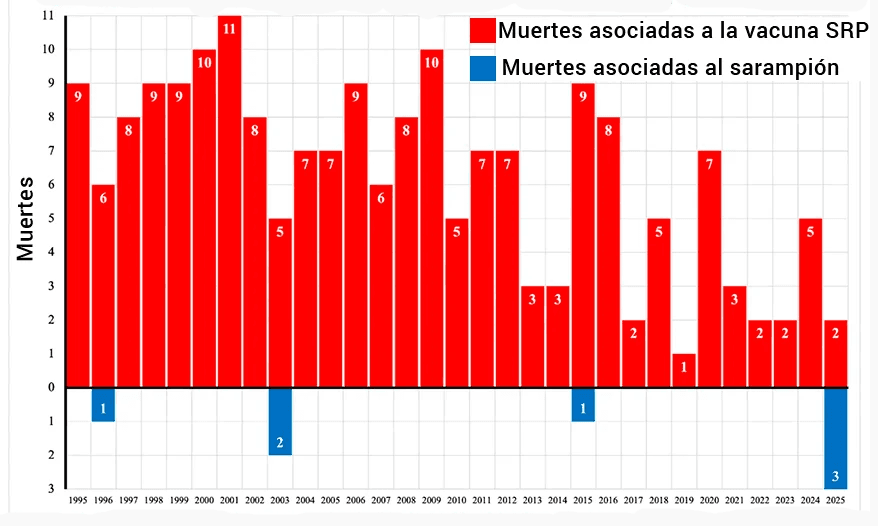 Buscando material para esta nota, encontramos un estudio reciente realizado por Kirstin Cosgrove, Breanne Craven, Peter A. McCullough y equipo, titulado “Deaths Following MMR and MMRV Vaccination in the United States”. El estudio examinó meticulosamente las muertes infantiles ocurridas posteriormente a la vacunación para sarampión, tanto con la triple viral (sarampión, paperas y rubéola) como con la cuádruple (sarampión, paperas, rubéola y varicela) en los Estados Unidos, de 1995 a 2025, en base a los reportes realizados al VAERS (Sistema para Reportar Eventos Adversos de las Vacunas).