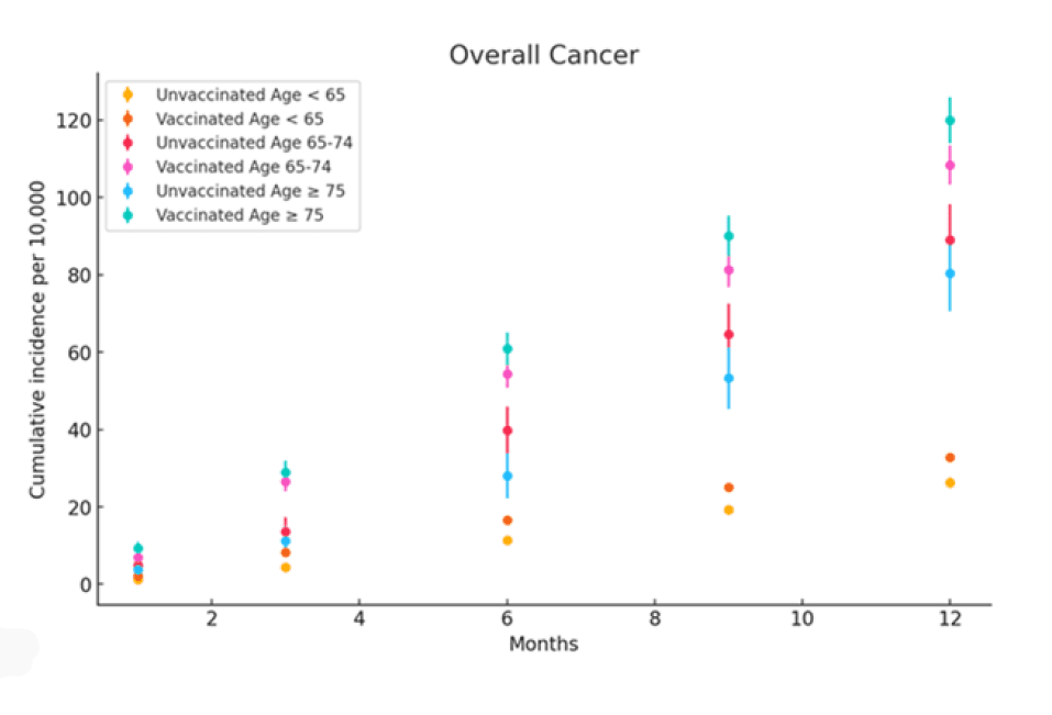 Otros cuadros como cánceres agresivos de rápida expansión también crecieron entre jóvenes en el mundo entre 2021 y 2023, y en muchos reportes se ha encontrado una asociación con un evento de vacunación anti-covid cercano en el tiempo. E incluso aparición de tumores en sitios cercanos al lugar de la inyección, como reportan en 2026 Charlotte Kuperwasser y Wafik S. El-Deiry, de la Universidad de Boston y la Universidad de Brown[i].