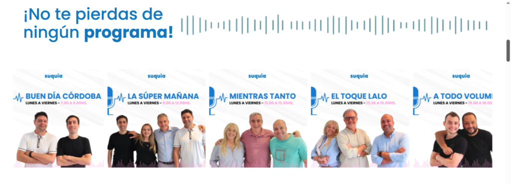 Dentro de la actual programación de Radio Suquía, aparecen figuras estelares que inciden en la opinión pública, por parte de la audiencia interesada en discutir las cuestiones de coyuntura local y nacional. Con figuras televisivas como Jorge Cuadrado, Lalo Freyre, y Roberto Battaglino, siendo notable que además todos ellos trabajan en los medios que integran el grupo Clarín.