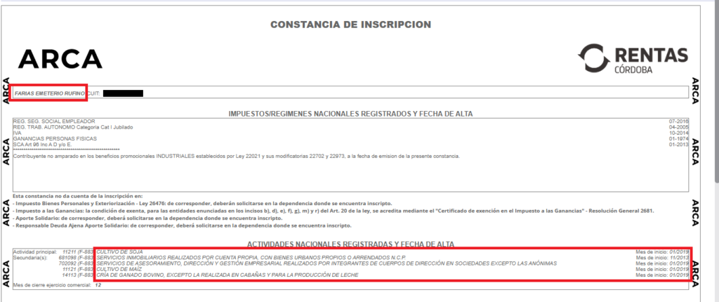 Curiosamente, desde el año 2019, Emeterio Farías está registrado en la AFIP, hoy ARCA, no como un hombre dedicado al espectáculo, a los deportes, la publicidad, y la comunicación. Sino como un hombre de campo. Así figura su constancia de CUIL, donde se registró como dedicado al cultivo de soja y maíz, además de la cría bovina. Desempeñándose también como proveedor de servicios inmobiliarios y asesor empresarial.