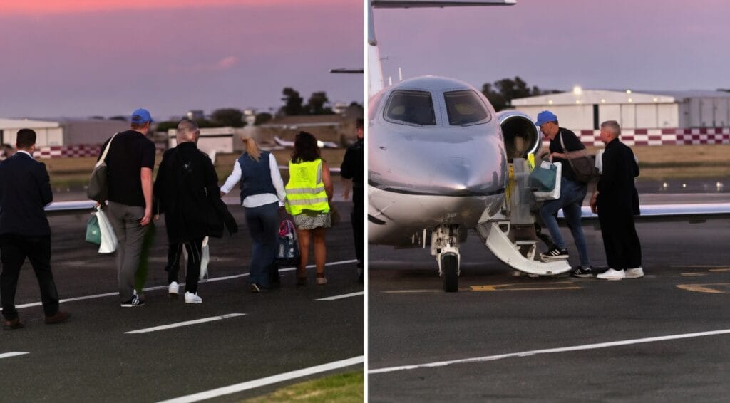 Imágenes del video difundido donde se ve a Manuel Adorni y su familia en el aeropuerto de San Fernando utilizando un avión privado para viajar a Punta del Este, viaje que según la documentación recabada fue pagado por su amigo Marcelo Grandio, cuya empresa tiene contratos con la TV Pública.