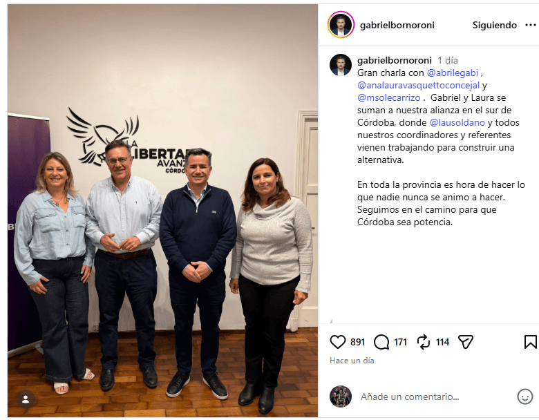 Pinasco fue reemplazado por Leonardo Farina, un microbiólogo que trabajó bajo las órdenes del ex secretario de Salud municipal y actual concejal radical, Gabriel Abrile. El “bornoronismo”, que no tiene aparato propio, suma dirigentes sueltos del radicalismo para engordar las filas de LLA, como es el caso del agrodiputado de Jesús María, Luis Picat, o la ex diputada Soledad Carrizo, que había acusado a Milei de generar un “ajuste mesiánico” y ahora está en la fila de embarque de LLA.