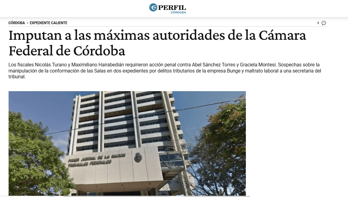 El escándalo por la situación sentimental que influye en las sentencias judiciales, fue creciendo de a poco como si los Tribunales Federales de Córdoba fueran una olla a presión. Hasta que a principios de abril estalló, cuando los fiscales Maximiliano Hairabedián y Nicolás Turano, de la Procuración General de la Nación, imputaron a Montesi y Sánchez Torres por los presuntos delitos de abuso de autoridad, violación a los deberes de funcionarios público, falsedad ideológica y coacción.
