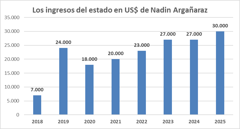 En el 2021, Nadín Argañaraz recibió en total $1.911.000, unos US$ 20 mil al cambio oficial; lo que le permitió recuperar un repunte. En este caso, se trató solo de una contratación directa del Ministerio de Coordinación, en “consultoría en materia de economía”, con montos mensuales de entre $ 130 mil y $ 160 mil.